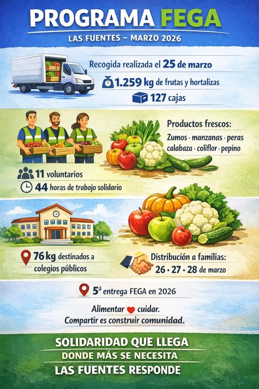 La actuación realizada el 25 de marzo de 2026 consolida el programa FEGA como un instrumento clave de apoyo alimentario en el barrio de Las Fuentes.