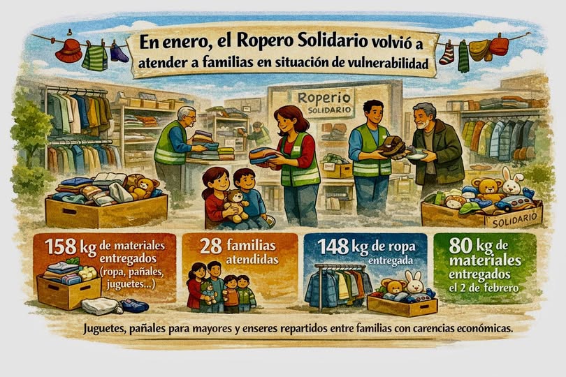 La reanudación del servicio pone de manifiesto la continuidad y necesidad del Ropero Solidario como recurso comunitario estable, integrado en la red de apoyo a familias vulnerables, y con previsión de desarrollo continuado a lo largo del año.