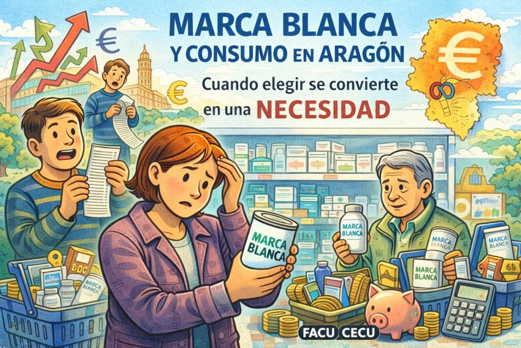 Desde la Federación Aragonesa de Consumidores y Usuarios (FACU) observamos con especial preocupación cómo los cambios en los hábitos de consumo están reflejando con claridad las dificultades reales de los hogares aragoneses. Hoy, seis de cada diez alimentos que forman parte de la cesta de la compra en España son de marca blanca y, según datos de la Aecoc, nuestro país es el que presenta una mayor implantación del producto del distribuidor en Europa, especialmente entre la población joven.