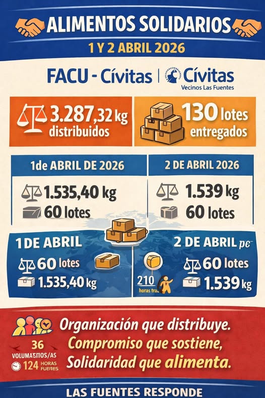 Cívitas y FACU continúan reforzando así su compromiso con las familias vulnerables del barrio de Las Fuentes, garantizando una respuesta organizada, cercana y eficaz ante situaciones de necesidad.